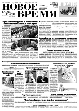 Общественно- политическая газета “Новое Время” была создана в 1992-м году и  за 20 лет своего существования сумела заслужить среди армянских читателей право называться лучшей русскоязычной газетой в РА. Помимо сугубо политических тем издание обращается также к вопросам социальным, научным, культурным. Внимание уделяется и проблемам  армянской диаспоры…