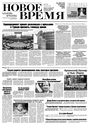 Общественно- политическая газета “Новое Время” была создана в 1992-м году и  за 20 лет своего существования сумела заслужить среди армянских читателей право называться лучшей русскоязычной газетой в РА. Помимо сугубо политических тем издание обращается также к вопросам социальным, научным, культурным. Внимание уделяется и проблемам  армянской диаспоры…