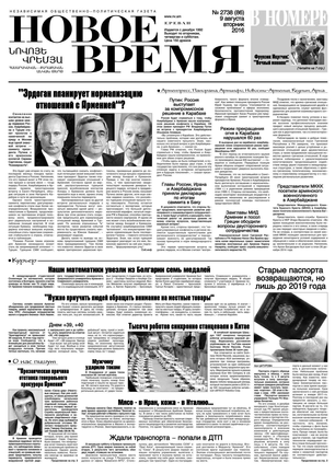 Общественно- политическая газета “Новое Время” была создана в 1992-м году и за 20 лет своего существования сумела заслужить среди армянских читателей право называться лучшей русскоязычной газетой в РА. Помимо сугубо политических тем издание обращается также к вопросам социальным, научным, культурным. Внимание уделяется и проблемам армянской диаспоры…