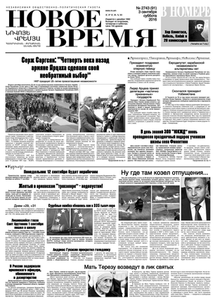 Общественно- политическая газета “Новое Время” была создана в 1992-м году и  за 20 лет своего существования сумела заслужить среди армянских читателей право называться лучшей русскоязычной газетой в РА. Помимо сугубо политических тем издание обращается также к вопросам социальным, научным, культурным. Внимание уделяется и проблемам  армянской диаспоры…