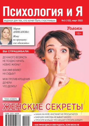 Журнал для тех, кто любит жизнь, стремится к гармонии с окружающим миром и с самим собой. Главная тема каждого номера – взаимоотношения между мужчиной и женщиной, родителями и детьми.