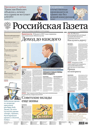 Это объективная, оперативная, качественная информация. Газета исповедует принцип: "Сведения из первых рук". В ней нет места домыслам - это журналистика факта. Подписавшись на "Российскую газету", вы получаете уникальную возможность задать любой волнующий вас вопрос представителям региональной и федеральной власти и получить ответ по существу. После публикации в газете вступают в силу федеральные законы, указы и распоряжения Президента России. Подписавшись на "Российскую газету", вы сможете получить полное представление обо всех важнейших событиях в России и мире, а сверх того много полезной информации, помогающей жить и добиваться успеха.