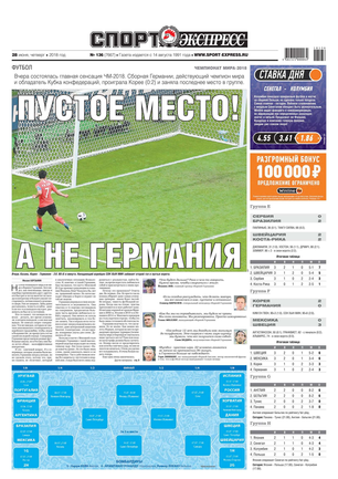 «Спорт-Экспресс» — ежедневная газета, полностью посвященная спорту. На страницах издания вы найдете интервью с известными спортсменами и тренерами, последние новости, материалы о футболе и хоккее с шайбой, баскетболе и керлинге, теннисе и фигурном катании, в общем, обо всех существующих ныне видах спорта. Вот уже несколько лет «СЭ» представляет Россию в European Sports Magazines (Европейской ассоциации спортивных изданий).