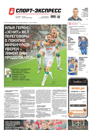 «Спорт-Экспресс» — ежедневная газета, полностью посвященная спорту. На страницах издания вы найдете интервью с известными спортсменами и тренерами, последние новости, материалы о футболе и хоккее с шайбой, баскетболе и керлинге, теннисе и фигурном катании, в общем, обо всех существующих ныне видах спорта. Вот уже несколько лет «СЭ» представляет Россию в European Sports Magazines (Европейской ассоциации спортивных изданий).
