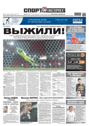 «Спорт-Экспресс» — ежедневная газета, полностью посвященная спорту. На страницах издания вы найдете интервью с известными спортсменами и тренерами, последние новости, материалы о футболе и хоккее с шайбой, баскетболе и керлинге, теннисе и фигурном катании, в общем, обо всех существующих ныне видах спорта. Вот уже несколько лет «СЭ» представляет Россию в European Sports Magazines (Европейской ассоциации спортивных изданий).