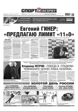 «Спорт-Экспресс» — ежедневная газета, полностью посвященная спорту. На страницах издания вы найдете интервью с известными спортсменами и тренерами, последние новости, материалы о футболе и хоккее с шайбой, баскетболе и керлинге, теннисе и фигурном катании, в общем, обо всех существующих ныне видах спорта. Вот уже несколько лет «СЭ» представляет Россию в European Sports Magazines (Европейской ассоциации спортивных изданий).