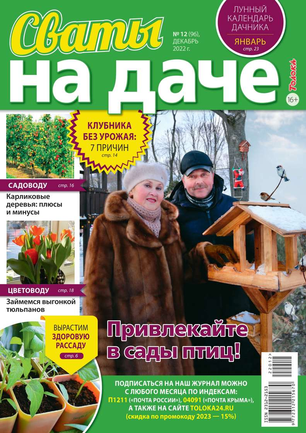 В журнале «Сваты на даче» вы узнаете, как проще, быстрее и без неимоверных усилий добиться высоких урожаев и обустроить дачный быт. В одном журнале 300 подсказок: самые действенные и доступные методы посева и посадки садово-огородных культур, ухода за ними, борьбы с вредителями и болезнями.