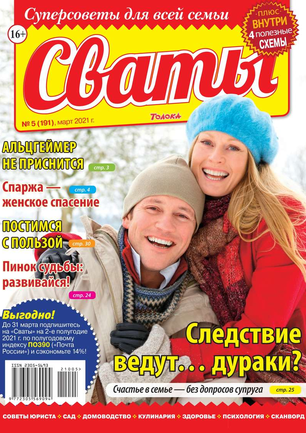 «Сват плохого не посоветует», — говорят в народе. В каждом номере журнала «Сваты» вы найдете: проверенные советы от читателей, экспертов, юристов, медиков, психологов, кулинарные рецепты, секреты здоровья, помощь в воспитании детей разного возраста, песни, байки, анекдоты. И все это в ярком, красочном оформлении.
