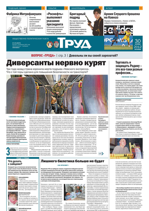 Одна из старейших общественно-политических газет (издается с февраля 1921 года). Корреспонденты «Труда» ежедневно рассказывают читателям о политике, культуре, спорте, экономике, жизни общества, самых интересных новостях дня и многом другом. Издание рассчитано на широкий круг читателей.