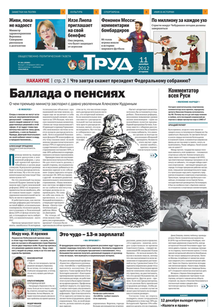 Одна из старейших общественно-политических газет (издается с февраля 1921 года). Корреспонденты «Труда» ежедневно рассказывают читателям о политике, культуре, спорте, экономике, жизни общества, самых интересных новостях дня и многом другом. Издание рассчитано на широкий круг читателей.