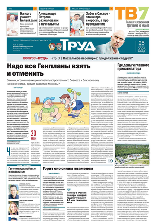 Одна из старейших общественно-политических газет (издается с февраля 1921 года). Корреспонденты «Труда» ежедневно рассказывают читателям о политике, культуре, спорте, экономике, жизни общества, самых интересных новостях дня и многом другом. Издание рассчитано на широкий круг читателей.