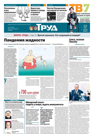 Одна из старейших общественно-политических газет (издается с февраля 1921 года). Корреспонденты «Труда» ежедневно рассказывают читателям о политике, культуре, спорте, экономике, жизни общества, самых интересных новостях дня и многом другом. Издание рассчитано на широкий круг читателей.