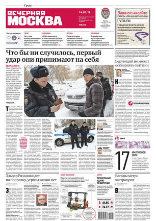 «Вечерняя Москва» — ежедневная российская вечерняя газета, старейшее из вечерних изданий в России, учрежденное в 1923 году. Выходит пять дней в неделю, кроме субботы и воскресенья. Отличается тем, что рассказывает о событиях еще не завершившегося дня. Оперативно освещает хронику и особенности жизни Москвы, охватывает все слои общества и большинство профессиональных и возрастных групп читателей.Издание представлено тремя выпусками – утренним ежедневным, вечерним (выходит три раза в неделю), еженедельным (выходит по четвергам).
