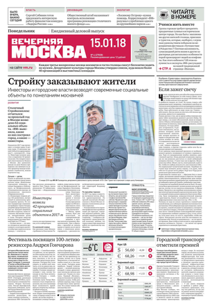 «Вечерняя Москва» — ежедневная российская вечерняя газета, старейшее из вечерних изданий в России, учрежденное в 1923 году. Выходит пять дней в неделю, кроме субботы и воскресенья. Отличается тем, что рассказывает о событиях еще не завершившегося дня. Оперативно освещает хронику и особенности жизни Москвы, охватывает все слои общества и большинство профессиональных и возрастных групп читателей.Издание представлено тремя выпусками – утренним ежедневным, вечерним (выходит три раза в неделю), еженедельным (выходит по четвергам).