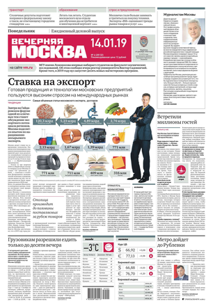 «Вечерняя Москва» — ежедневная российская вечерняя газета, старейшее из вечерних изданий в России, учрежденное в 1923 году. Выходит пять дней в неделю, кроме субботы и воскресенья. Отличается тем, что рассказывает о событиях еще не завершившегося дня. Оперативно освещает хронику и особенности жизни Москвы, охватывает все слои общества и большинство профессиональных и возрастных групп читателей.Издание представлено тремя выпусками – утренним ежедневным, вечерним (выходит три раза в неделю), еженедельным (выходит по четвергам).