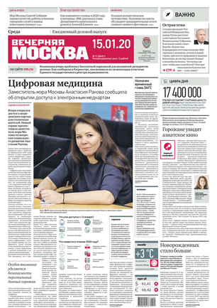 «Вечерняя Москва» — ежедневная российская вечерняя газета, старейшее из вечерних изданий в России, учрежденное в 1923 году. Выходит пять дней в неделю, кроме субботы и воскресенья. Отличается тем, что рассказывает о событиях еще не завершившегося дня. Оперативно освещает хронику и особенности жизни Москвы, охватывает все слои общества и большинство профессиональных и возрастных групп читателей.Издание представлено тремя выпусками – утренним ежедневным, вечерним (выходит три раза в неделю), еженедельным (выходит по четвергам).