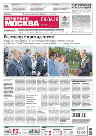 «Вечерняя Москва» — ежедневная российская вечерняя газета, старейшее из вечерних изданий в России, учрежденное в 1923 году. Выходит пять дней в неделю, кроме субботы и воскресенья. Отличается тем, что рассказывает о событиях еще не завершившегося дня. Оперативно освещает хронику и особенности жизни Москвы, охватывает все слои общества и большинство профессиональных и возрастных групп читателей.Издание представлено тремя выпусками – утренним ежедневным, вечерним (выходит три раза в неделю), еженедельным (выходит по четвергам).