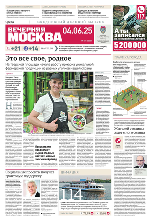 «Вечерняя Москва» — ежедневная российская вечерняя газета, старейшее из вечерних изданий в России, учрежденное в 1923 году. Выходит пять дней в неделю, кроме субботы и воскресенья. Отличается тем, что рассказывает о событиях еще не завершившегося дня. Оперативно освещает хронику и особенности жизни Москвы, охватывает все слои общества и большинство профессиональных и возрастных групп читателей.Издание представлено тремя выпусками – утренним ежедневным, вечерним (выходит три раза в неделю), еженедельным (выходит по четвергам).