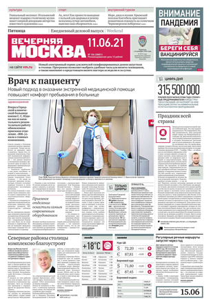«Вечерняя Москва» — ежедневная российская вечерняя газета, старейшее из вечерних изданий в России, учрежденное в 1923 году. Выходит пять дней в неделю, кроме субботы и воскресенья. Отличается тем, что рассказывает о событиях еще не завершившегося дня. Оперативно освещает хронику и особенности жизни Москвы, охватывает все слои общества и большинство профессиональных и возрастных групп читателей.Издание представлено тремя выпусками – утренним ежедневным, вечерним (выходит три раза в неделю), еженедельным (выходит по четвергам).