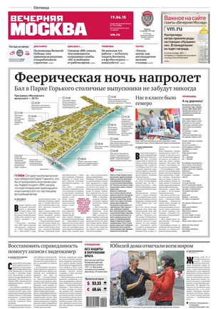 «Вечерняя Москва» — ежедневная российская вечерняя газета, старейшее из вечерних изданий в России, учрежденное в 1923 году. Выходит пять дней в неделю, кроме субботы и воскресенья. Отличается тем, что рассказывает о событиях еще не завершившегося дня. Оперативно освещает хронику и особенности жизни Москвы, охватывает все слои общества и большинство профессиональных и возрастных групп читателей.Издание представлено тремя выпусками – утренним ежедневным, вечерним (выходит три раза в неделю), еженедельным (выходит по четвергам).