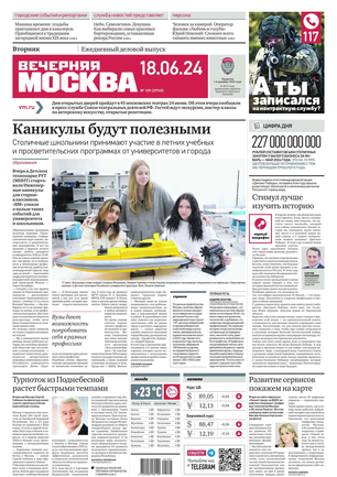«Вечерняя Москва» — ежедневная российская вечерняя газета, старейшее из вечерних изданий в России, учрежденное в 1923 году. Выходит пять дней в неделю, кроме субботы и воскресенья. Отличается тем, что рассказывает о событиях еще не завершившегося дня. Оперативно освещает хронику и особенности жизни Москвы, охватывает все слои общества и большинство профессиональных и возрастных групп читателей.Издание представлено тремя выпусками – утренним ежедневным, вечерним (выходит три раза в неделю), еженедельным (выходит по четвергам).