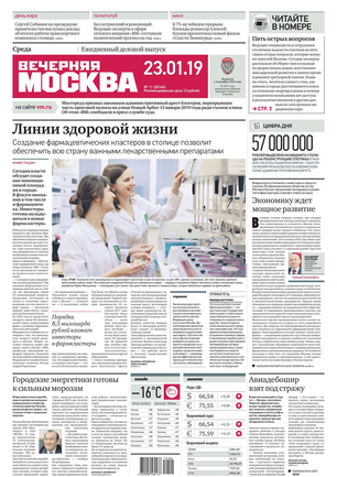 «Вечерняя Москва» — ежедневная российская вечерняя газета, старейшее из вечерних изданий в России, учрежденное в 1923 году. Выходит пять дней в неделю, кроме субботы и воскресенья. Отличается тем, что рассказывает о событиях еще не завершившегося дня. Оперативно освещает хронику и особенности жизни Москвы, охватывает все слои общества и большинство профессиональных и возрастных групп читателей.Издание представлено тремя выпусками – утренним ежедневным, вечерним (выходит три раза в неделю), еженедельным (выходит по четвергам).
