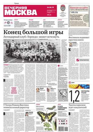 «Вечерняя Москва» — ежедневная российская вечерняя газета, старейшее из вечерних изданий в России, учрежденное в 1923 году. Выходит пять дней в неделю, кроме субботы и воскресенья. Отличается тем, что рассказывает о событиях еще не завершившегося дня. Оперативно освещает хронику и особенности жизни Москвы, охватывает все слои общества и большинство профессиональных и возрастных групп читателей.Издание представлено тремя выпусками – утренним ежедневным, вечерним (выходит три раза в неделю), еженедельным (выходит по четвергам).