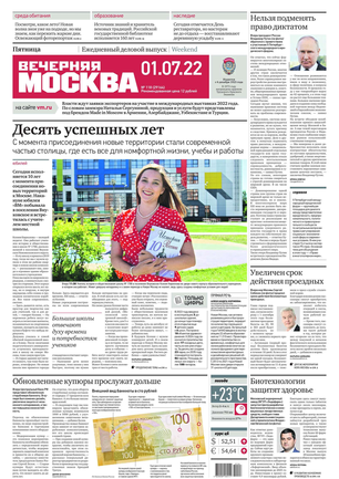 «Вечерняя Москва» — ежедневная российская вечерняя газета, старейшее из вечерних изданий в России, учрежденное в 1923 году. Выходит пять дней в неделю, кроме субботы и воскресенья. Отличается тем, что рассказывает о событиях еще не завершившегося дня. Оперативно освещает хронику и особенности жизни Москвы, охватывает все слои общества и большинство профессиональных и возрастных групп читателей.Издание представлено тремя выпусками – утренним ежедневным, вечерним (выходит три раза в неделю), еженедельным (выходит по четвергам).