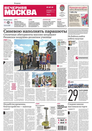 «Вечерняя Москва» — ежедневная российская вечерняя газета, старейшее из вечерних изданий в России, учрежденное в 1923 году. Выходит пять дней в неделю, кроме субботы и воскресенья. Отличается тем, что рассказывает о событиях еще не завершившегося дня. Оперативно освещает хронику и особенности жизни Москвы, охватывает все слои общества и большинство профессиональных и возрастных групп читателей.Издание представлено тремя выпусками – утренним ежедневным, вечерним (выходит три раза в неделю), еженедельным (выходит по четвергам).