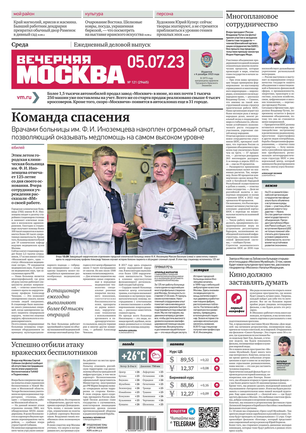 «Вечерняя Москва» — ежедневная российская вечерняя газета, старейшее из вечерних изданий в России, учрежденное в 1923 году. Выходит пять дней в неделю, кроме субботы и воскресенья. Отличается тем, что рассказывает о событиях еще не завершившегося дня. Оперативно освещает хронику и особенности жизни Москвы, охватывает все слои общества и большинство профессиональных и возрастных групп читателей.Издание представлено тремя выпусками – утренним ежедневным, вечерним (выходит три раза в неделю), еженедельным (выходит по четвергам).
