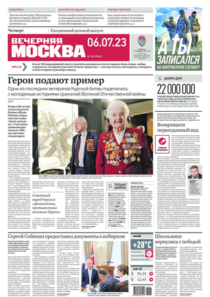 «Вечерняя Москва» — ежедневная российская вечерняя газета, старейшее из вечерних изданий в России, учрежденное в 1923 году. Выходит пять дней в неделю, кроме субботы и воскресенья. Отличается тем, что рассказывает о событиях еще не завершившегося дня. Оперативно освещает хронику и особенности жизни Москвы, охватывает все слои общества и большинство профессиональных и возрастных групп читателей.Издание представлено тремя выпусками – утренним ежедневным, вечерним (выходит три раза в неделю), еженедельным (выходит по четвергам).