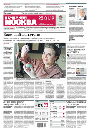 «Вечерняя Москва» — ежедневная российская вечерняя газета, старейшее из вечерних изданий в России, учрежденное в 1923 году. Выходит пять дней в неделю, кроме субботы и воскресенья. Отличается тем, что рассказывает о событиях еще не завершившегося дня. Оперативно освещает хронику и особенности жизни Москвы, охватывает все слои общества и большинство профессиональных и возрастных групп читателей.Издание представлено тремя выпусками – утренним ежедневным, вечерним (выходит три раза в неделю), еженедельным (выходит по четвергам).