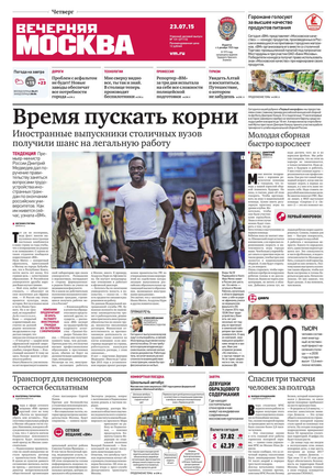 «Вечерняя Москва» — ежедневная российская вечерняя газета, старейшее из вечерних изданий в России, учрежденное в 1923 году. Выходит пять дней в неделю, кроме субботы и воскресенья. Отличается тем, что рассказывает о событиях еще не завершившегося дня. Оперативно освещает хронику и особенности жизни Москвы, охватывает все слои общества и большинство профессиональных и возрастных групп читателей.Издание представлено тремя выпусками – утренним ежедневным, вечерним (выходит три раза в неделю), еженедельным (выходит по четвергам).