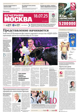«Вечерняя Москва» — ежедневная российская вечерняя газета, старейшее из вечерних изданий в России, учрежденное в 1923 году. Выходит пять дней в неделю, кроме субботы и воскресенья. Отличается тем, что рассказывает о событиях еще не завершившегося дня. Оперативно освещает хронику и особенности жизни Москвы, охватывает все слои общества и большинство профессиональных и возрастных групп читателей.Издание представлено тремя выпусками – утренним ежедневным, вечерним (выходит три раза в неделю), еженедельным (выходит по четвергам).