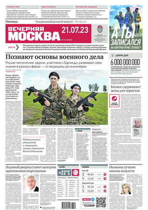 «Вечерняя Москва» — ежедневная российская вечерняя газета, старейшее из вечерних изданий в России, учрежденное в 1923 году. Выходит пять дней в неделю, кроме субботы и воскресенья. Отличается тем, что рассказывает о событиях еще не завершившегося дня. Оперативно освещает хронику и особенности жизни Москвы, охватывает все слои общества и большинство профессиональных и возрастных групп читателей.Издание представлено тремя выпусками – утренним ежедневным, вечерним (выходит три раза в неделю), еженедельным (выходит по четвергам).