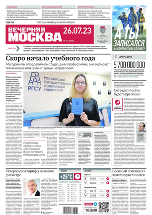 «Вечерняя Москва» — ежедневная российская вечерняя газета, старейшее из вечерних изданий в России, учрежденное в 1923 году. Выходит пять дней в неделю, кроме субботы и воскресенья. Отличается тем, что рассказывает о событиях еще не завершившегося дня. Оперативно освещает хронику и особенности жизни Москвы, охватывает все слои общества и большинство профессиональных и возрастных групп читателей.Издание представлено тремя выпусками – утренним ежедневным, вечерним (выходит три раза в неделю), еженедельным (выходит по четвергам).