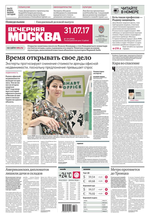 «Вечерняя Москва» — ежедневная российская вечерняя газета, старейшее из вечерних изданий в России, учрежденное в 1923 году. Выходит пять дней в неделю, кроме субботы и воскресенья. Отличается тем, что рассказывает о событиях еще не завершившегося дня. Оперативно освещает хронику и особенности жизни Москвы, охватывает все слои общества и большинство профессиональных и возрастных групп читателей.Издание представлено тремя выпусками – утренним ежедневным, вечерним (выходит три раза в неделю), еженедельным (выходит по четвергам).