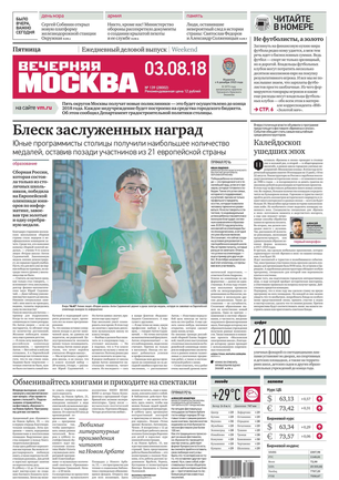 «Вечерняя Москва» — ежедневная российская вечерняя газета, старейшее из вечерних изданий в России, учрежденное в 1923 году. Выходит пять дней в неделю, кроме субботы и воскресенья. Отличается тем, что рассказывает о событиях еще не завершившегося дня. Оперативно освещает хронику и особенности жизни Москвы, охватывает все слои общества и большинство профессиональных и возрастных групп читателей.Издание представлено тремя выпусками – утренним ежедневным, вечерним (выходит три раза в неделю), еженедельным (выходит по четвергам).