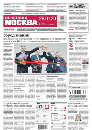 «Вечерняя Москва» — ежедневная российская вечерняя газета, старейшее из вечерних изданий в России, учрежденное в 1923 году. Выходит пять дней в неделю, кроме субботы и воскресенья. Отличается тем, что рассказывает о событиях еще не завершившегося дня. Оперативно освещает хронику и особенности жизни Москвы, охватывает все слои общества и большинство профессиональных и возрастных групп читателей.Издание представлено тремя выпусками – утренним ежедневным, вечерним (выходит три раза в неделю), еженедельным (выходит по четвергам).