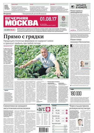 «Вечерняя Москва» — ежедневная российская вечерняя газета, старейшее из вечерних изданий в России, учрежденное в 1923 году. Выходит пять дней в неделю, кроме субботы и воскресенья. Отличается тем, что рассказывает о событиях еще не завершившегося дня. Оперативно освещает хронику и особенности жизни Москвы, охватывает все слои общества и большинство профессиональных и возрастных групп читателей.Издание представлено тремя выпусками – утренним ежедневным, вечерним (выходит три раза в неделю), еженедельным (выходит по четвергам).