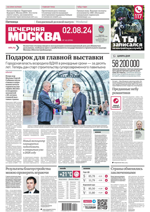 «Вечерняя Москва» — ежедневная российская вечерняя газета, старейшее из вечерних изданий в России, учрежденное в 1923 году. Выходит пять дней в неделю, кроме субботы и воскресенья. Отличается тем, что рассказывает о событиях еще не завершившегося дня. Оперативно освещает хронику и особенности жизни Москвы, охватывает все слои общества и большинство профессиональных и возрастных групп читателей.Издание представлено тремя выпусками – утренним ежедневным, вечерним (выходит три раза в неделю), еженедельным (выходит по четвергам).