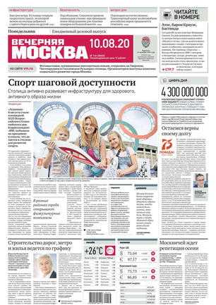 «Вечерняя Москва» — ежедневная российская вечерняя газета, старейшее из вечерних изданий в России, учрежденное в 1923 году. Выходит пять дней в неделю, кроме субботы и воскресенья. Отличается тем, что рассказывает о событиях еще не завершившегося дня. Оперативно освещает хронику и особенности жизни Москвы, охватывает все слои общества и большинство профессиональных и возрастных групп читателей.Издание представлено тремя выпусками – утренним ежедневным, вечерним (выходит три раза в неделю), еженедельным (выходит по четвергам).
