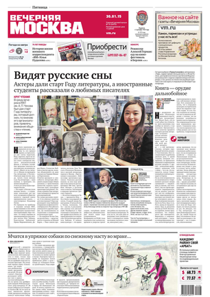 «Вечерняя Москва» — ежедневная российская вечерняя газета, старейшее из вечерних изданий в России, учрежденное в 1923 году. Выходит пять дней в неделю, кроме субботы и воскресенья. Отличается тем, что рассказывает о событиях еще не завершившегося дня. Оперативно освещает хронику и особенности жизни Москвы, охватывает все слои общества и большинство профессиональных и возрастных групп читателей.Издание представлено тремя выпусками – утренним ежедневным, вечерним (выходит три раза в неделю), еженедельным (выходит по четвергам).