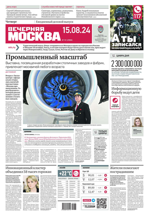 «Вечерняя Москва» — ежедневная российская вечерняя газета, старейшее из вечерних изданий в России, учрежденное в 1923 году. Выходит пять дней в неделю, кроме субботы и воскресенья. Отличается тем, что рассказывает о событиях еще не завершившегося дня. Оперативно освещает хронику и особенности жизни Москвы, охватывает все слои общества и большинство профессиональных и возрастных групп читателей.Издание представлено тремя выпусками – утренним ежедневным, вечерним (выходит три раза в неделю), еженедельным (выходит по четвергам).