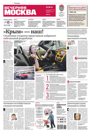 «Вечерняя Москва» — ежедневная российская вечерняя газета, старейшее из вечерних изданий в России, учрежденное в 1923 году. Выходит пять дней в неделю, кроме субботы и воскресенья. Отличается тем, что рассказывает о событиях еще не завершившегося дня. Оперативно освещает хронику и особенности жизни Москвы, охватывает все слои общества и большинство профессиональных и возрастных групп читателей.Издание представлено тремя выпусками – утренним ежедневным, вечерним (выходит три раза в неделю), еженедельным (выходит по четвергам).