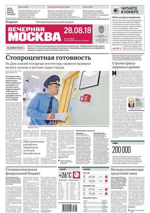 «Вечерняя Москва» — ежедневная российская вечерняя газета, старейшее из вечерних изданий в России, учрежденное в 1923 году. Выходит пять дней в неделю, кроме субботы и воскресенья. Отличается тем, что рассказывает о событиях еще не завершившегося дня. Оперативно освещает хронику и особенности жизни Москвы, охватывает все слои общества и большинство профессиональных и возрастных групп читателей.Издание представлено тремя выпусками – утренним ежедневным, вечерним (выходит три раза в неделю), еженедельным (выходит по четвергам).