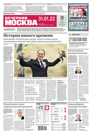 «Вечерняя Москва» — ежедневная российская вечерняя газета, старейшее из вечерних изданий в России, учрежденное в 1923 году. Выходит пять дней в неделю, кроме субботы и воскресенья. Отличается тем, что рассказывает о событиях еще не завершившегося дня. Оперативно освещает хронику и особенности жизни Москвы, охватывает все слои общества и большинство профессиональных и возрастных групп читателей.Издание представлено тремя выпусками – утренним ежедневным, вечерним (выходит три раза в неделю), еженедельным (выходит по четвергам).