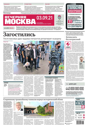 «Вечерняя Москва» — ежедневная российская вечерняя газета, старейшее из вечерних изданий в России, учрежденное в 1923 году. Выходит пять дней в неделю, кроме субботы и воскресенья. Отличается тем, что рассказывает о событиях еще не завершившегося дня. Оперативно освещает хронику и особенности жизни Москвы, охватывает все слои общества и большинство профессиональных и возрастных групп читателей.Издание представлено тремя выпусками – утренним ежедневным, вечерним (выходит три раза в неделю), еженедельным (выходит по четвергам).