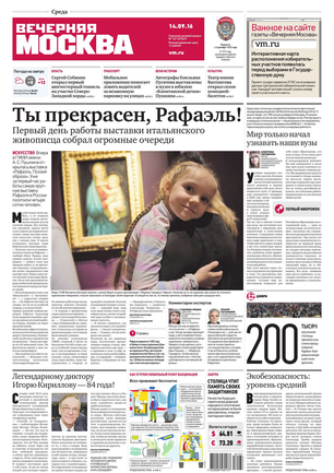 «Вечерняя Москва» — ежедневная российская вечерняя газета, старейшее из вечерних изданий в России, учрежденное в 1923 году. Выходит пять дней в неделю, кроме субботы и воскресенья. Отличается тем, что рассказывает о событиях еще не завершившегося дня. Оперативно освещает хронику и особенности жизни Москвы, охватывает все слои общества и большинство профессиональных и возрастных групп читателей.Издание представлено тремя выпусками – утренним ежедневным, вечерним (выходит три раза в неделю), еженедельным (выходит по четвергам).
