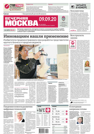 «Вечерняя Москва» — ежедневная российская вечерняя газета, старейшее из вечерних изданий в России, учрежденное в 1923 году. Выходит пять дней в неделю, кроме субботы и воскресенья. Отличается тем, что рассказывает о событиях еще не завершившегося дня. Оперативно освещает хронику и особенности жизни Москвы, охватывает все слои общества и большинство профессиональных и возрастных групп читателей.Издание представлено тремя выпусками – утренним ежедневным, вечерним (выходит три раза в неделю), еженедельным (выходит по четвергам).